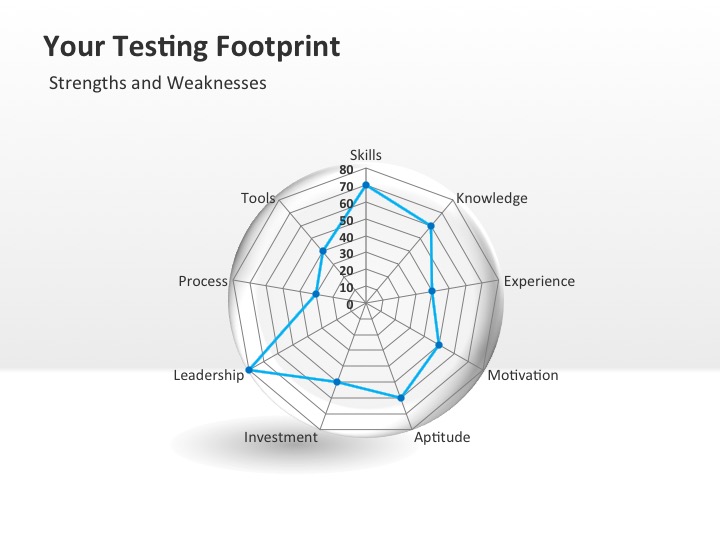 This assessment is a free-form exploratory approach to assessing your current testing capabilities. We start with topics you wish to have investigated and may branch out as we find areas that deserve further examination. Like with the other assessments, the deliverable is an informative report with a radar chart of your organization’s testing footprint.